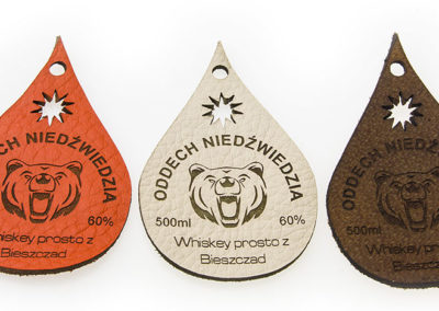 Grawerowanie skóry laserem także daje bardzo dobre efekty i zazwyczaj tworzy wysoki kontrast zapewniający dobrą widoczność grawerowanych napisów lub grafiki. Im jaśniejsza skóra tym większy kontrast i ładniejszy efekt. Choć jak widać na zdjęciu powyżej na czarnej skórze także efekt jest dobry i widoczny. Tak na prawdę jedynym minusem laserowej obróbki skóry jest niezbyt przyjemny zapach (podobny do spalonych włosów) utrzymujący się przez kilka dni. Na szczęście przeczyszczenie skóry dedykowanym środkiem pielęgnującym pomaga znacznie szybciej pozbyć się tego zapachu. Grawer jest również wyczuwalny pod palcem, więc może służyć do tworzenia różnego rodzaju ozdobnych ornamentów. Jak zwykle w przypadku obróbki laserem możliwości ogranicza prawie tylko wyobraźnia… oraz fakt, że grawer możemy wykonać tylko na płaskiej powierzchni.